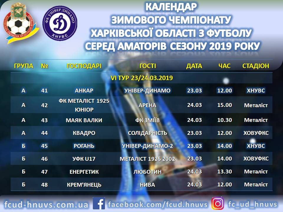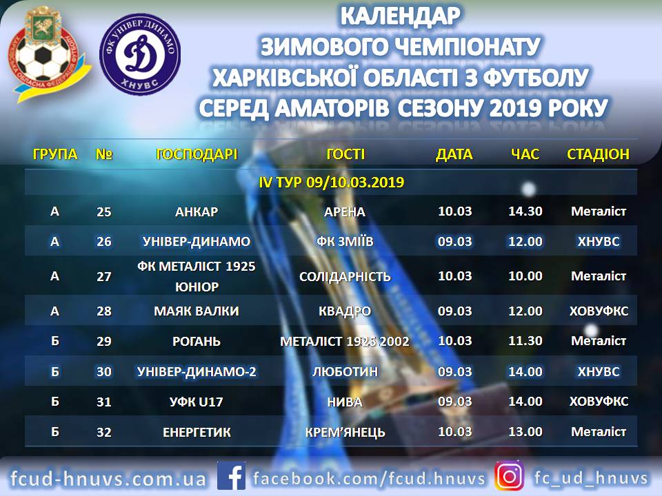 Розклад матчів за участю команд Харківської області.