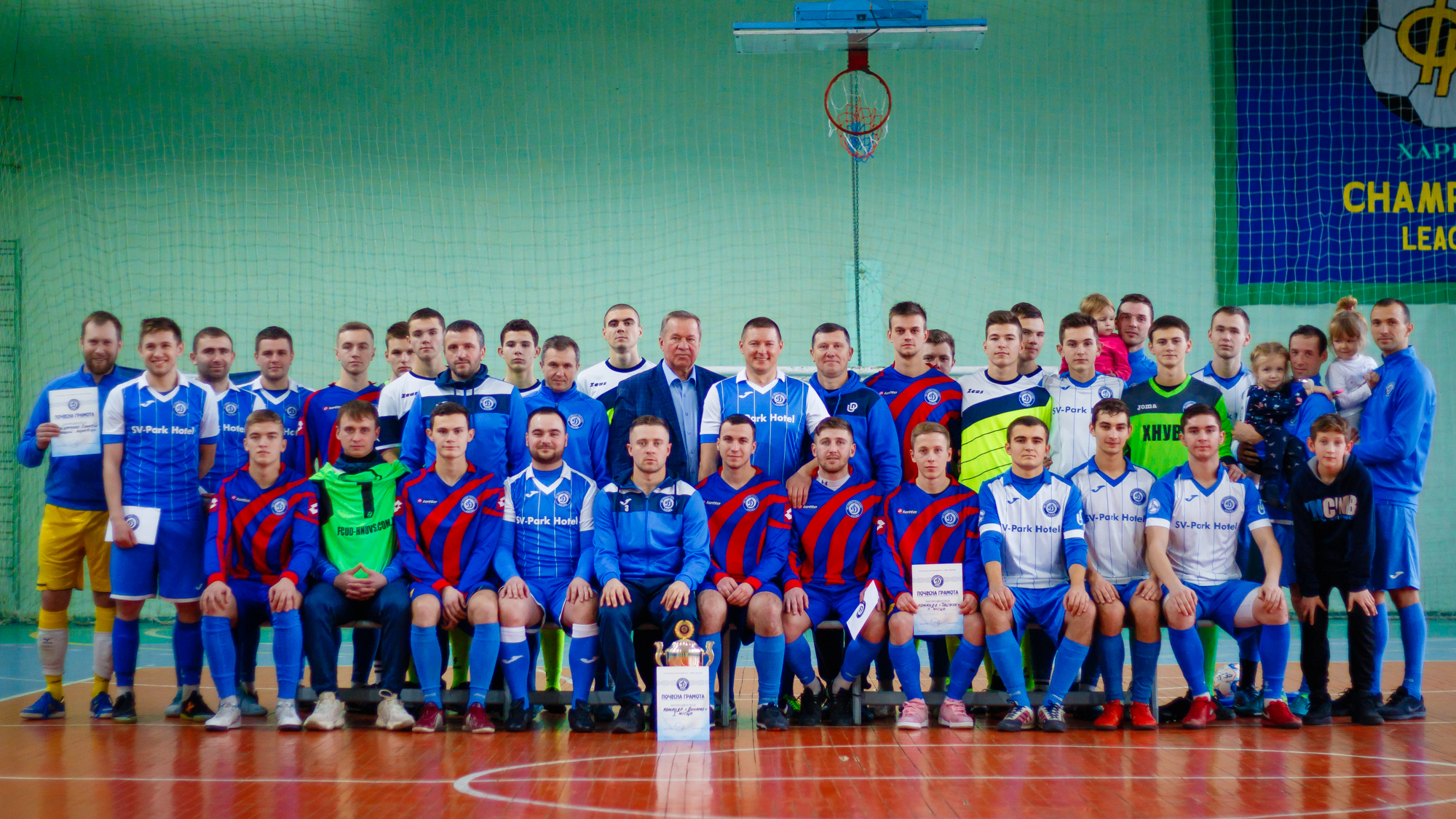 Чи є у футболістів у період міжсезоння свята? Відповідь «Так» це гра у футбол! Наприкінці 2019 року у Харківському національному університеті внутрішніх справ відбулося справжнє футбольне дійство. Тому, не дивлячись на відпустку, команда ФК «Універ-Динамо» у повному складі та у гарному настрої «відшліфовувала» свою майстерність на красені стадіоні НТК «Динамо-Арена». Керівництво клубу вирішило організувати передноворічний турнір з футзалу між командами футбольного клубу «Універ-Динамо», який у подальшому стане традиційним! До приємних обставин треба віднести і той факт, що завдяки підтримці меценатів змагання отримали свій призовий фонд, який склав 15 000 гривень!Напередодні змагань гравці, тренери та керівництво клубу були поділені на чотири команди: «Динамо», «Універ», «Тайфун» та «Легіон». За результатами жеребкування першими вийшли гравці команд «Універ» та «Динамо». Дебют зустрічі (3:0) на користь динамівців обумовив подальший перебіг подій на полі. Остаточний підсумок матчу (8:1) на користь «Динамо» повністю відобразив перебіг подій на майданчику. Приблизно такий же початок був і у другому матчі на користь команди «Тайфун», але на відміну від першої зустрічі, події у подальшому розгорталися за сценарієм «Легіону». Та все ж стартовий спурт синьо-красних зіграв вирішальну роль у визначенні переможця цього протистояння: (6:4) на користь «Тайфуну». Багато сил у гравців команди «Легіону» забрала ця зустріч…Наступний поєдинок проти «Динамо» пройшов «в одні ворота» і завершився з рахунком (6:0) на користь останніх. Інтрига наступної зустрічі – чи зможе «Тайфун» нам подарувати справжнє святу своєрідного фіналу у наступному турі, чи буде «пекло» у боротьбі за друге місце у заключних матчах? Підсумок – перемога «Тайфуну» над «Універом» (5:1) і останній тур одноколового турніру стає імпровізованими фіналами за перше і третє місця! Щоб описати усі цікаві перипетії протистоянь «Динамо»-«Тайфун» та «Універ»-«Легіон», не вистачить часу, тому обмежимося тільки результатами. Перемоги «Динамо» (4:2) та «Універу» (5:2) дозволили їм виграти «свої» фінали і остаточно сформували підсумкову турнірну таблицю змагань.